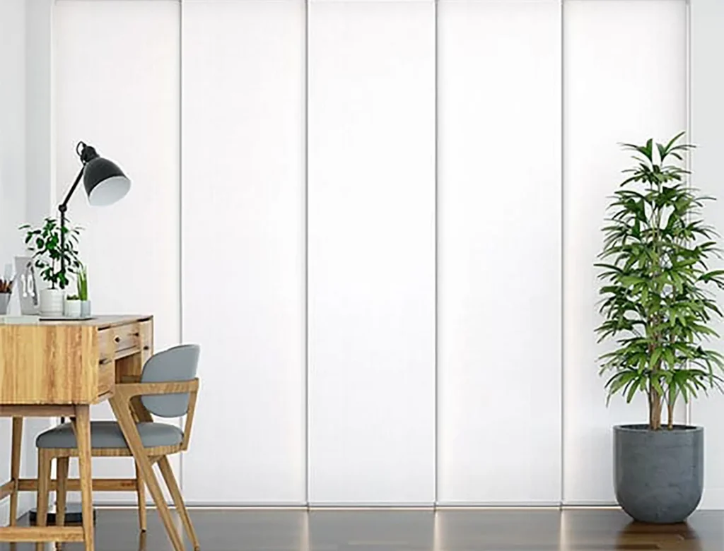 A modern solution, panel glides feature wide fabric panels that glide effortlessly. Wide & elegant panels slide with ease: creating balance, movement, and modern presence.