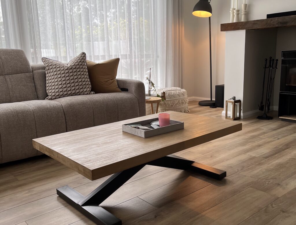 The Aura sheer curtains gently filter natural light, allowing the home to feel bright and open while still providing everyday privacy. Their soft texture introduces warmth and movement, complementing the clean lines of the interior and helping the space feel relaxed, refined, and inviting.